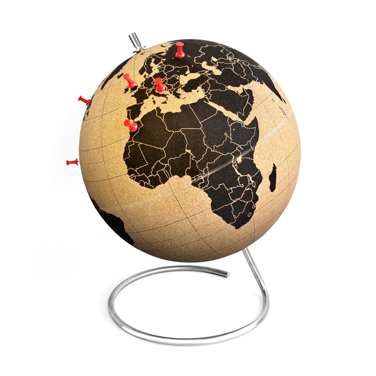 Soit un globe en ardoise où vous pourrez laisser parler votre imagination ou alors le même modèle en liège où vous pourrez planter des petites punaises aux endroits que vous avez visités!