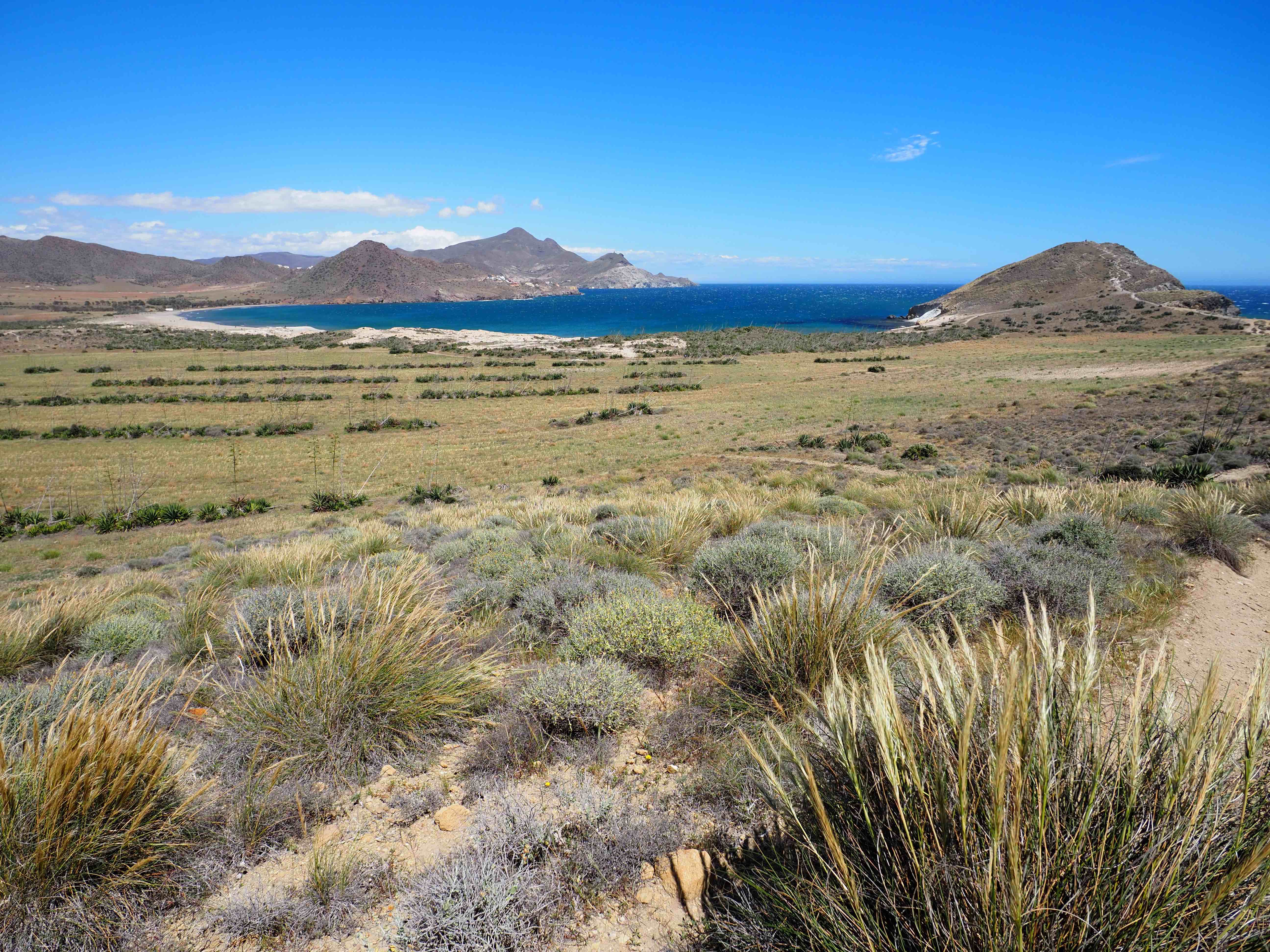 Sur la côte (Almería, Cabo de Gata), c’est plus supportable car il y a toujours un peu de vent mais il y fait quand même chaud.