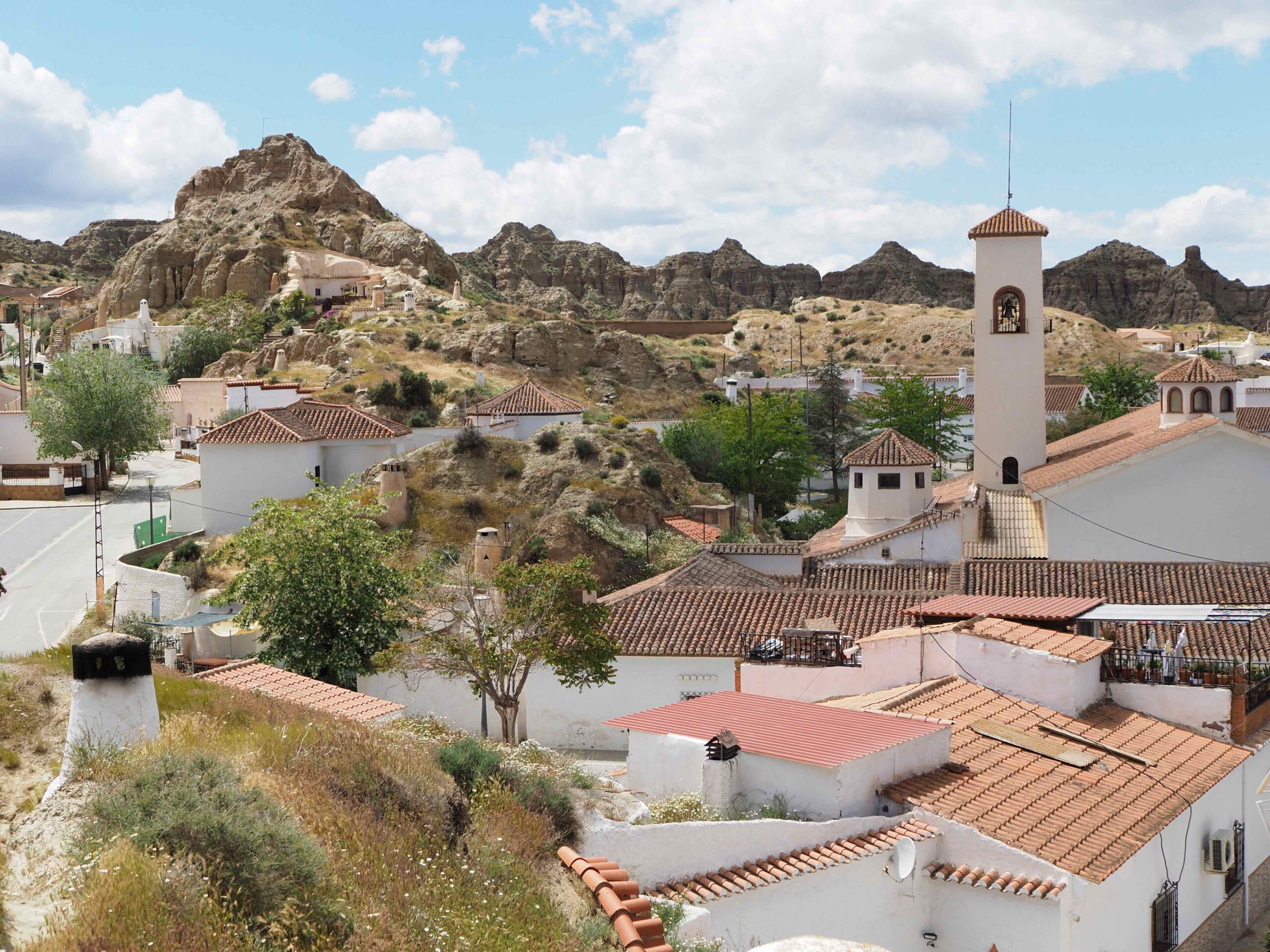 À quelques kilomètres du désert de Gorafe, vous pourrez visiter le village de Guadix. Ce village atypique est connu pour ses maisons troglodytes, appelées cuevas, creusées directement dans la roche. C’est assez surprenant à voir, surtout avec ces petites cheminées blanches qui sortent de la roche.