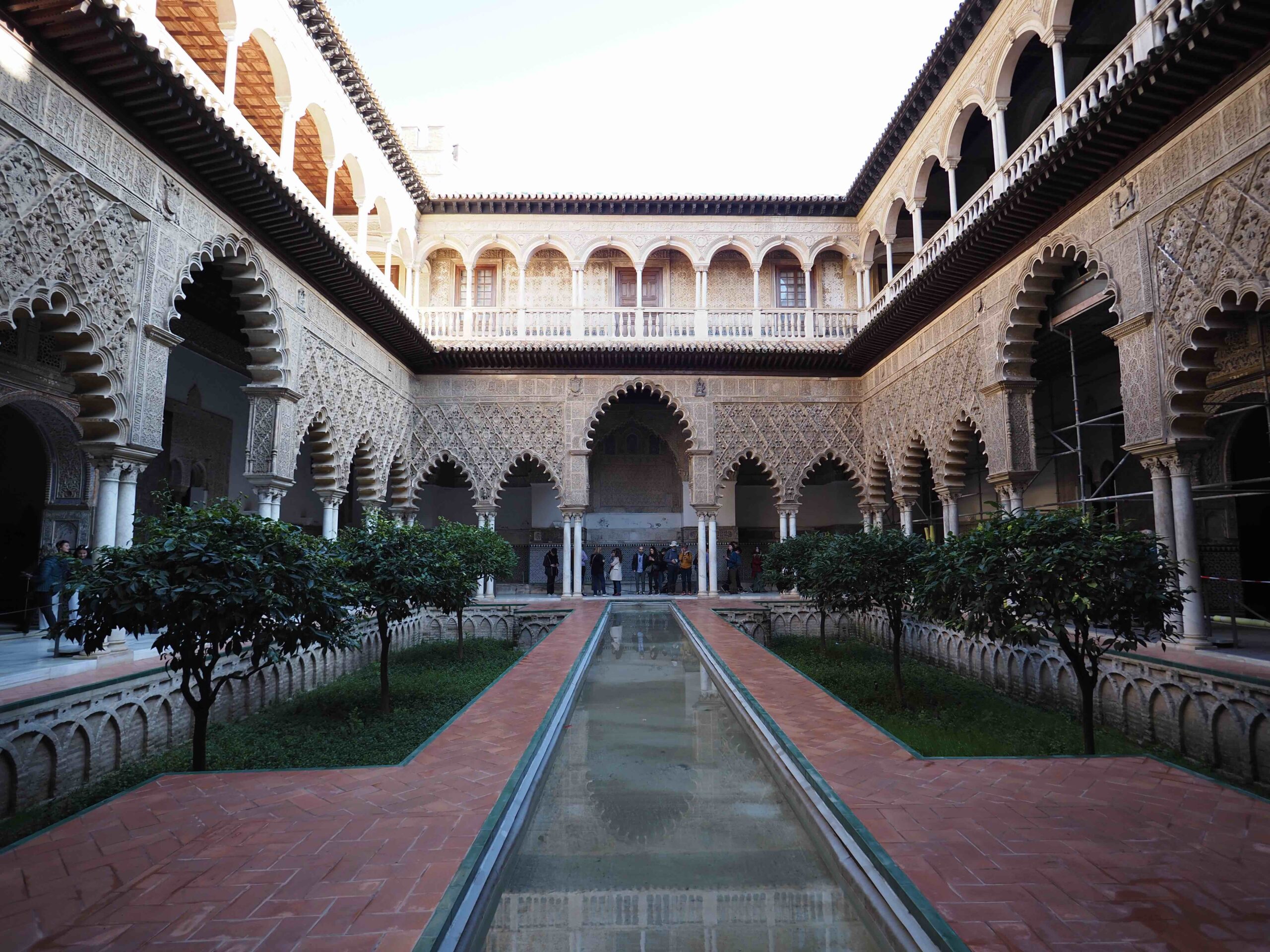 Sur place, il n’est pas rare de voir des files d’attente de plus de 2 heures, surtout au printemps et en été. Et avec les températures à Séville, attendre en plein soleil peut vite devenir long. Nous y étions fin janvier en pleine semaine, ce n’était même pas le week-end et nous avons attendu 1h pour pouvoir acheter nos tickets. Parfois il n’y a même plus de place sur plusieurs jours.