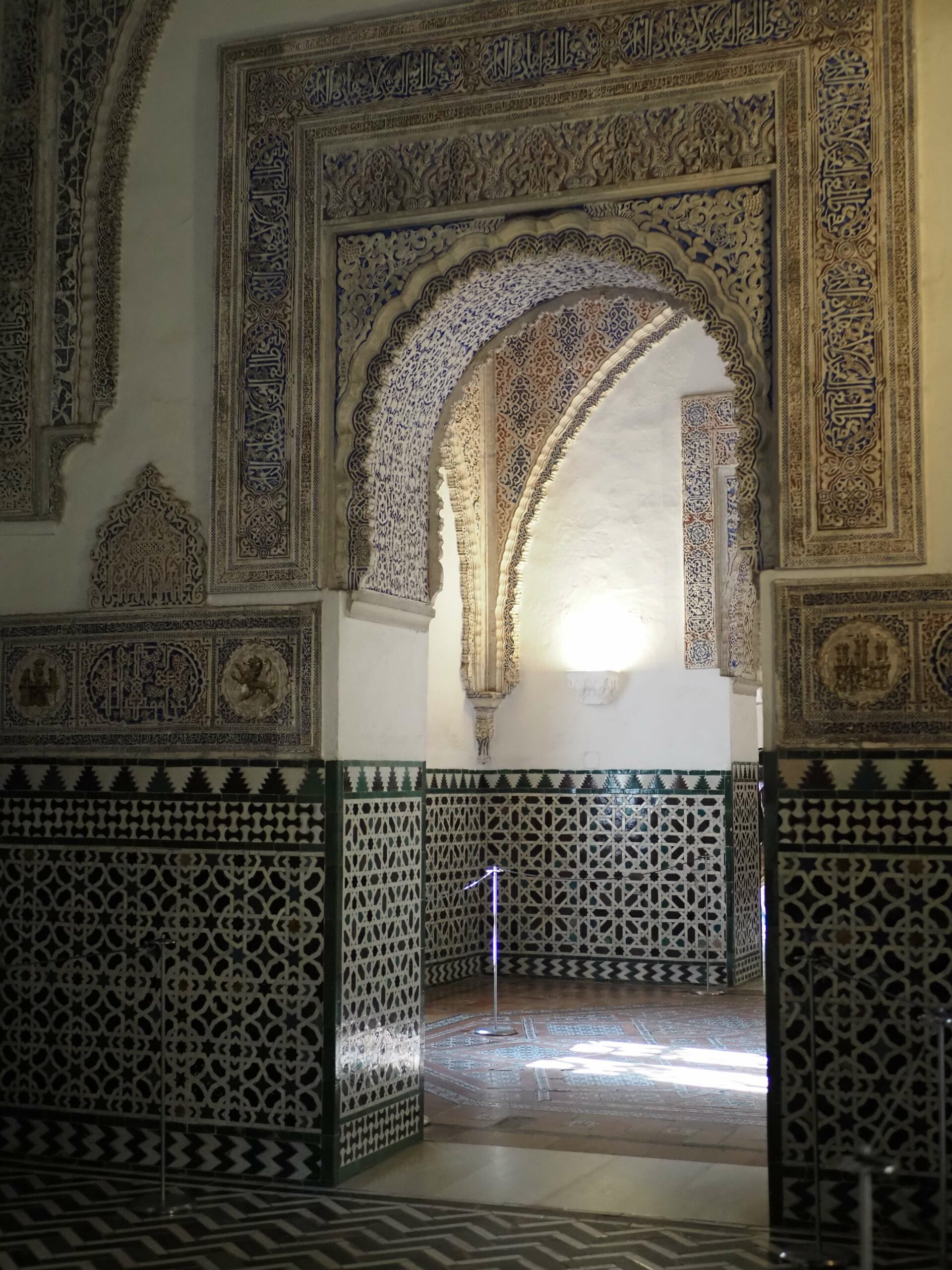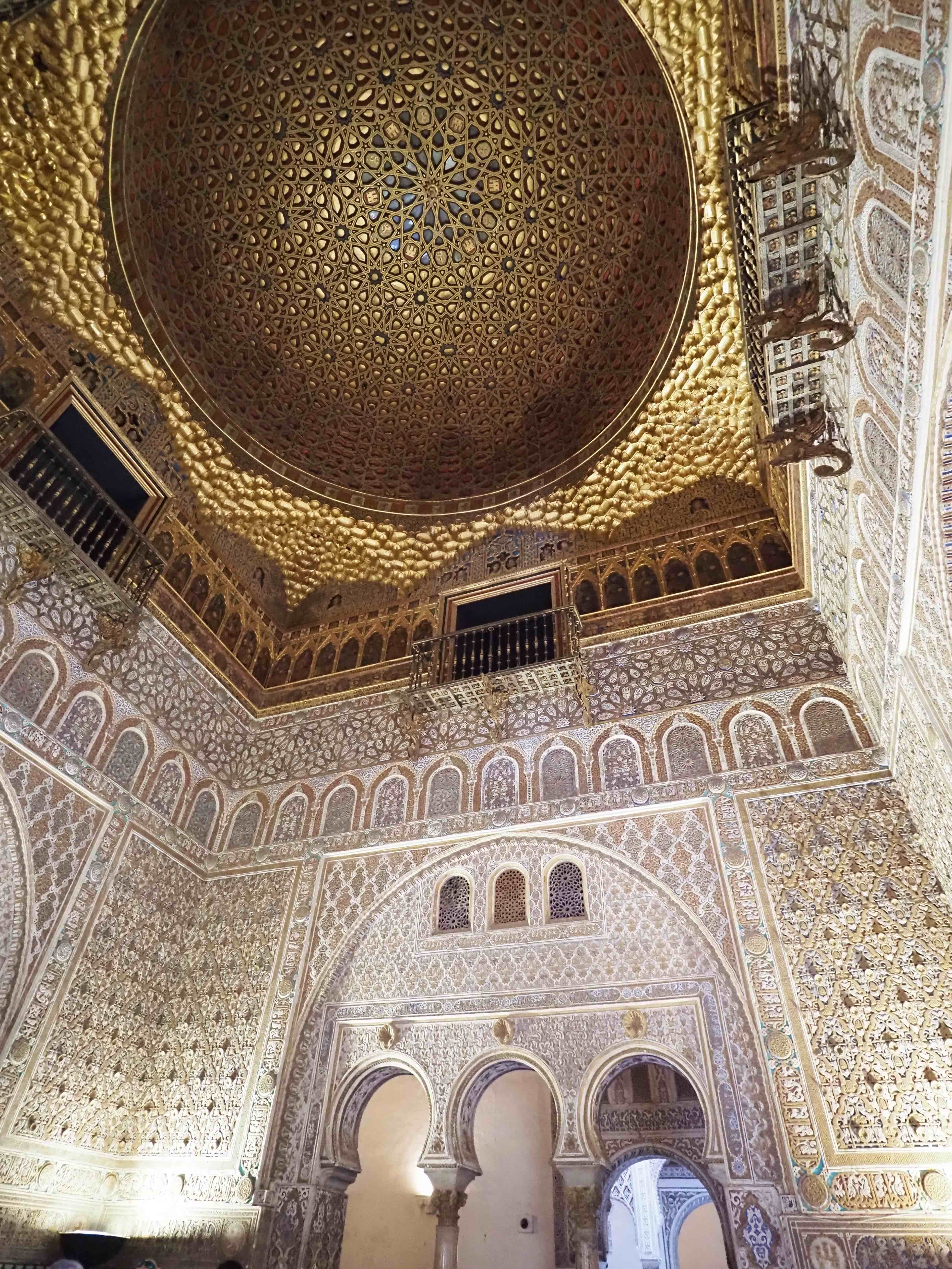 La salle des Ambassadeurs est l’une des pièces les plus impressionnantes de l’Alcázar de Séville. Construite sous le règne de Pierre Ier, elle se distingue par sa forme carrée surmontée d’une grande coupole, typique de l’architecture mudéjare.