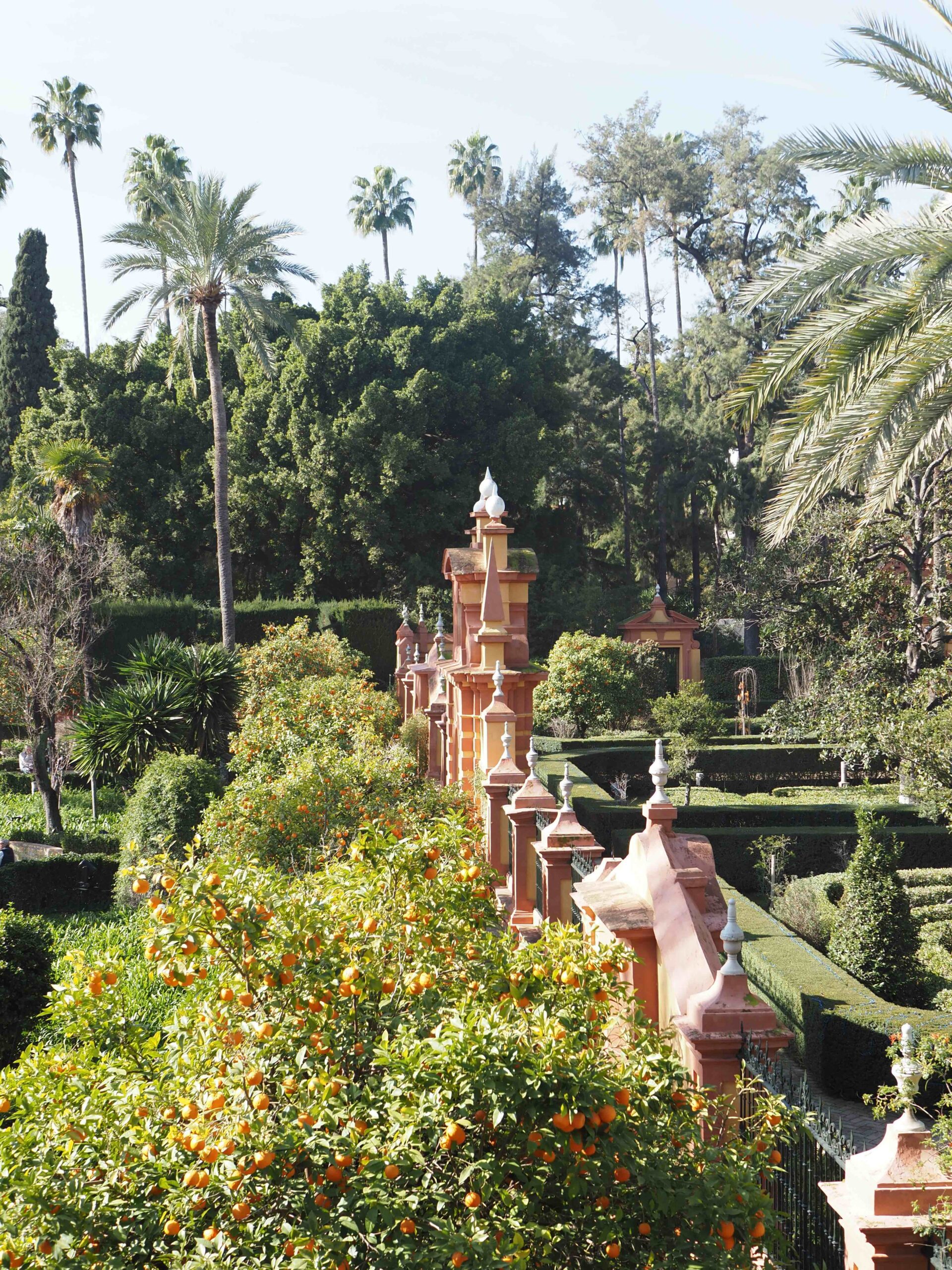 Un vrai coup de cœur. Ce sont des jardins immenses avec fontaines, palmiers et plein d’orangers… et même un petit labyrinthe. Parfait pour faire une pause extérieure après la visite des palais.