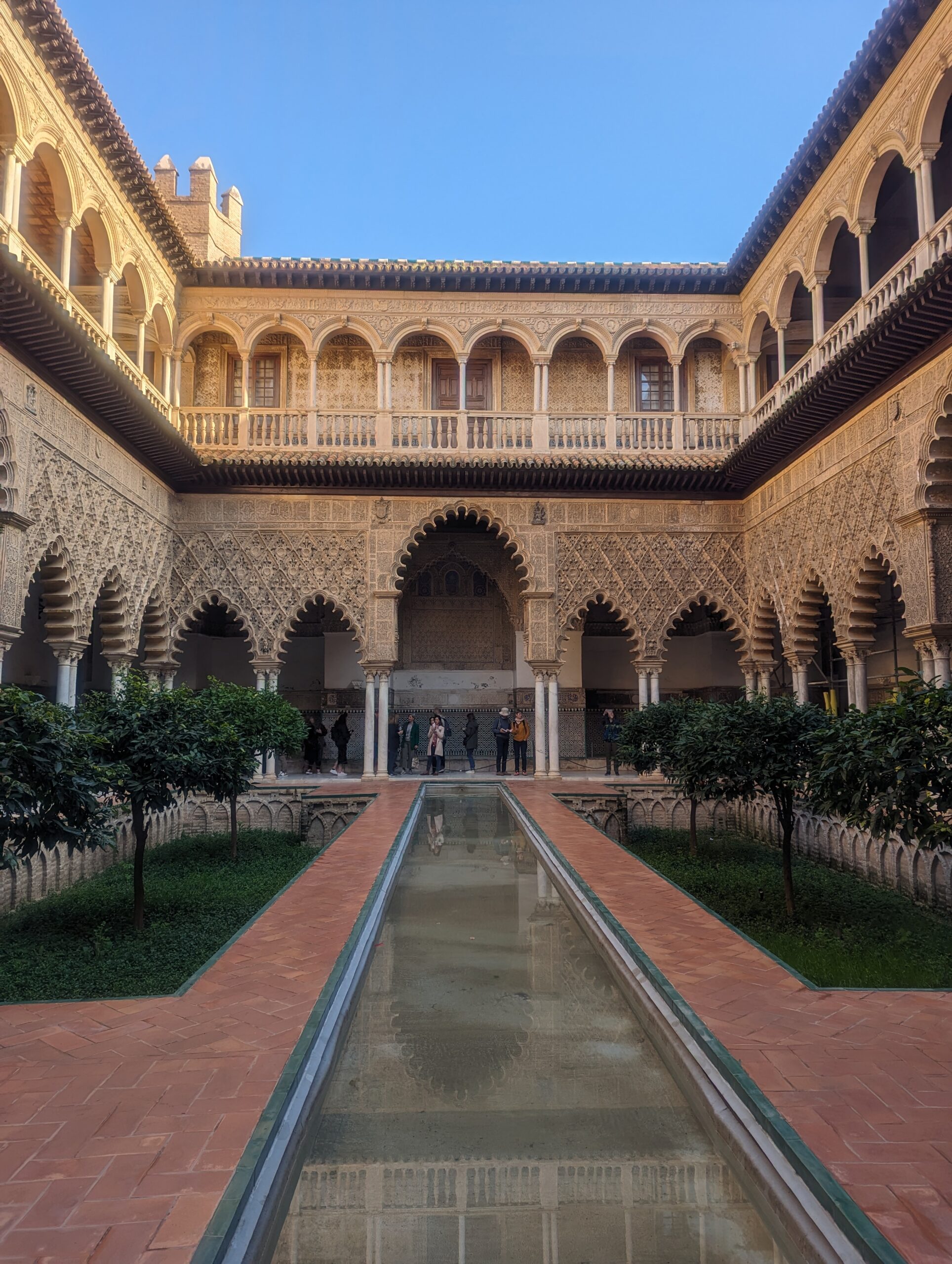 Le Patio de las Doncellas, c’est le fameux patio rectangulaire entouré d’arches finement décorées. C’est la cour des jeunes filles, avec le bassin au centre qui donne un bel équilibre architectural.