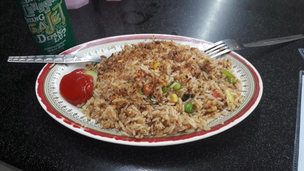 Nasi Goreng (à gauche), Cheese naan & dahl, Nasi Goreng Ayam (en bas)
