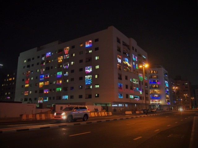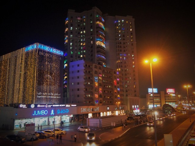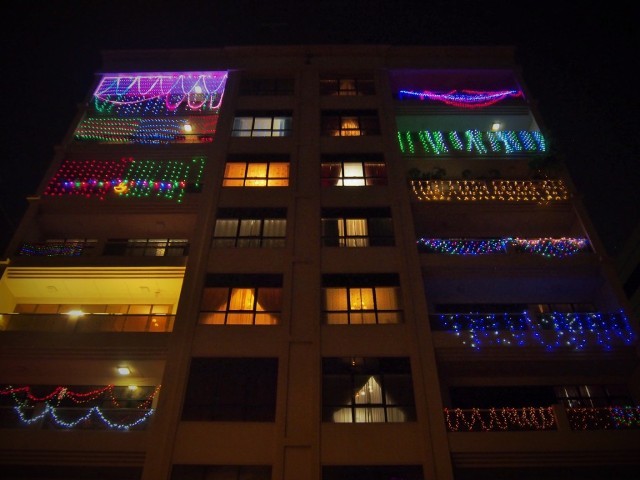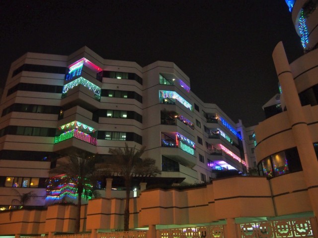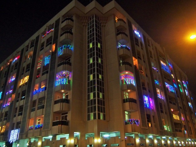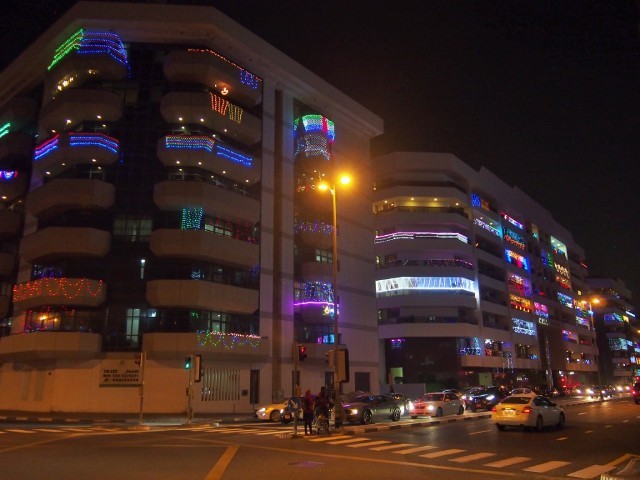 Rendez-vous dans le quartier de Burjuman pour commencer votre balade nocturne. Comme vous pouvez le voir sur ces photos, la plupart des balcons des appartements sont décorés par des guirlandes lumineuses. Un joli spectacle lorsque toutes ces rues sont illuminées.