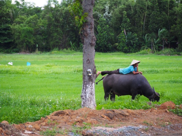 Un petit oubli: ma photo préférée est celle du fermier confortablement installé sur le dos de son buffle!
