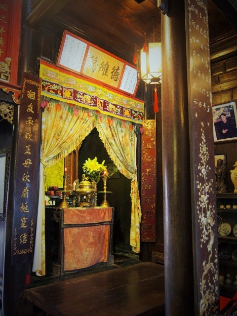 Wouhou je boite un peu plus vite ! On décide de visiter une « Ancient house », une des anciennes maisons communes. On nous fait asseoir sur des chaises en bois. La visite guidée est pour le moins, rapide! Il s’agissait de « Old House of Tan Ky » (n°101), une maison construite il y a 200 ans pour une famille vietnamienne. On y aperçoit l’influence à la fois chinoise et japonaise.