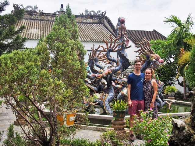Alors là, quelle surprise! La ville est réellement magnifique. Elle a tellement de charme ! c’est incroyable : ces vieilles maisons décrépies jaunes, des lanternes colorées dans toute la ville, les pousse-pousses dans les ruelles, du bougainvillier rose lorsqu’on lève la tête et le tout bordé par l’eau de la rivière Thu Bôn. Ok, on a déjà oublié le bus et l’entorse, enfin presque ! Puisque je marche à 1km/h et je dois m’arrêter très souvent. Mais cette ville nous apaise, et on est juste émerveillé par sa beauté.
