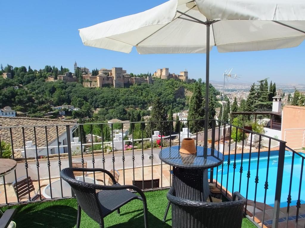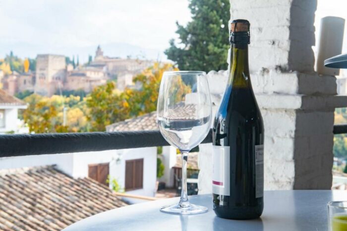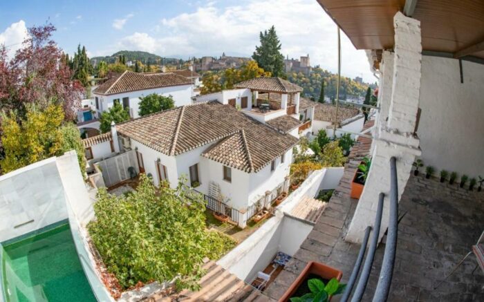 Si vous cherchez la vue sur l’Alhambra la plus spectaculaire de tout Grenade, c’est ici. Les Apartamentos Montesclaros proposent des appartements et des grottes entièrement équipés, avec plusieurs terrasses meublées et une piscine donnant directement sur l’Alhambra : le rêve ! La vue est spectaculaire aussi bien de jour que de nuit! C’est un complexe familial ouvert depuis 2008, qui a su garder une atmosphère intime et personnalisée malgré le succès. Le point fort : la piscine avec vue panoramique sur l’Alhambra, unique en son genre, parfaite en été quand les températures grimpent à Grenade. Prix moyen par nuit : 200€.