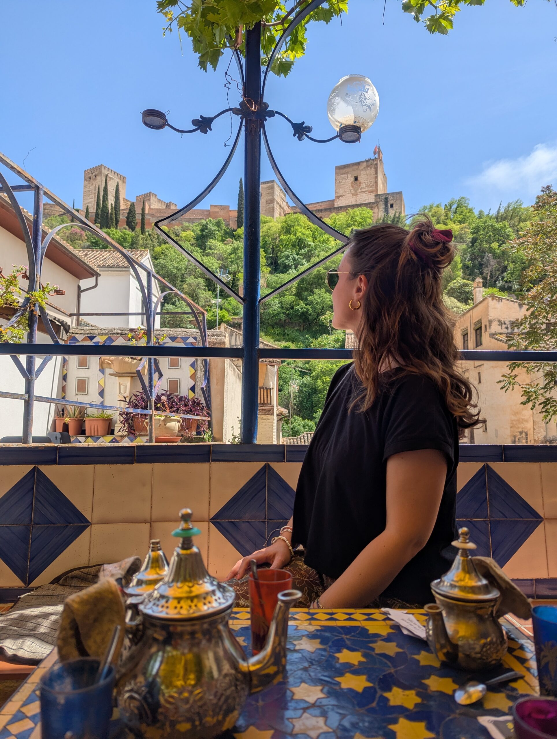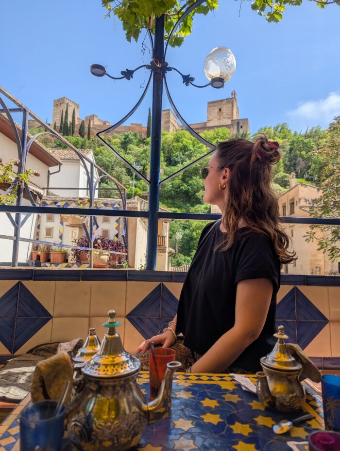 Ce que j’ai aimé à Grenade, c’est ce mélange : on peut passer la matinée à visiter un palais chargé d’histoire, se perdre dans les petites rues de l’Albaicín, puis terminer la journée sur un point de vue ou dans une teteria (où on boit du thé) au coucher de soleil avec vue sur la ville. Et entre deux, on n’oublie pas de profiter des tapas (souvent « offertes » avec une boisson, assez rare en Espagne).