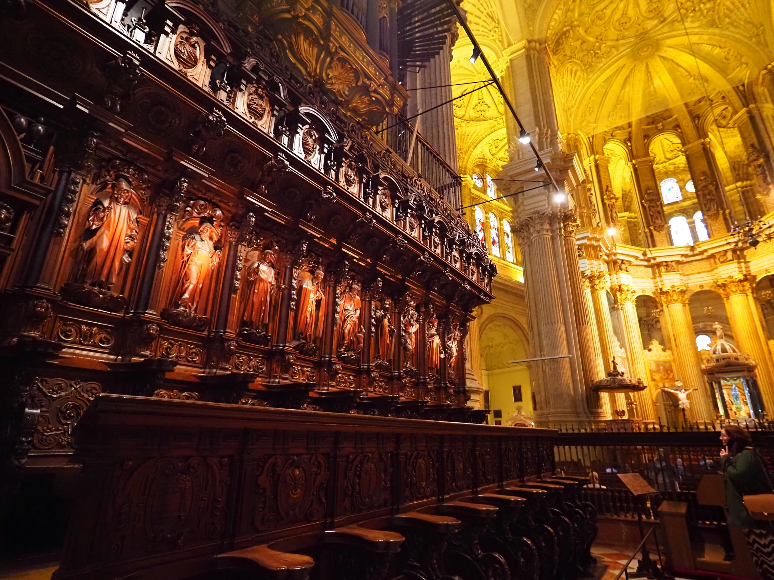 La grande cathédrale de Malaga, surnommée La Manquita, est l’un des monuments emblématiques de la ville. Elle impressionne par sa taille et son architecture, en plein cœur du centre historique. L’intérieur est lumineux, on remarque immédiatement la hauteur des voûtes, la richesse des détails. L’élément le plus marquant reste son immense orgue, considéré comme l’un des plus impressionnants d’Espagne, avec ses milliers de tuyaux qui occupent toute une partie de la nef.