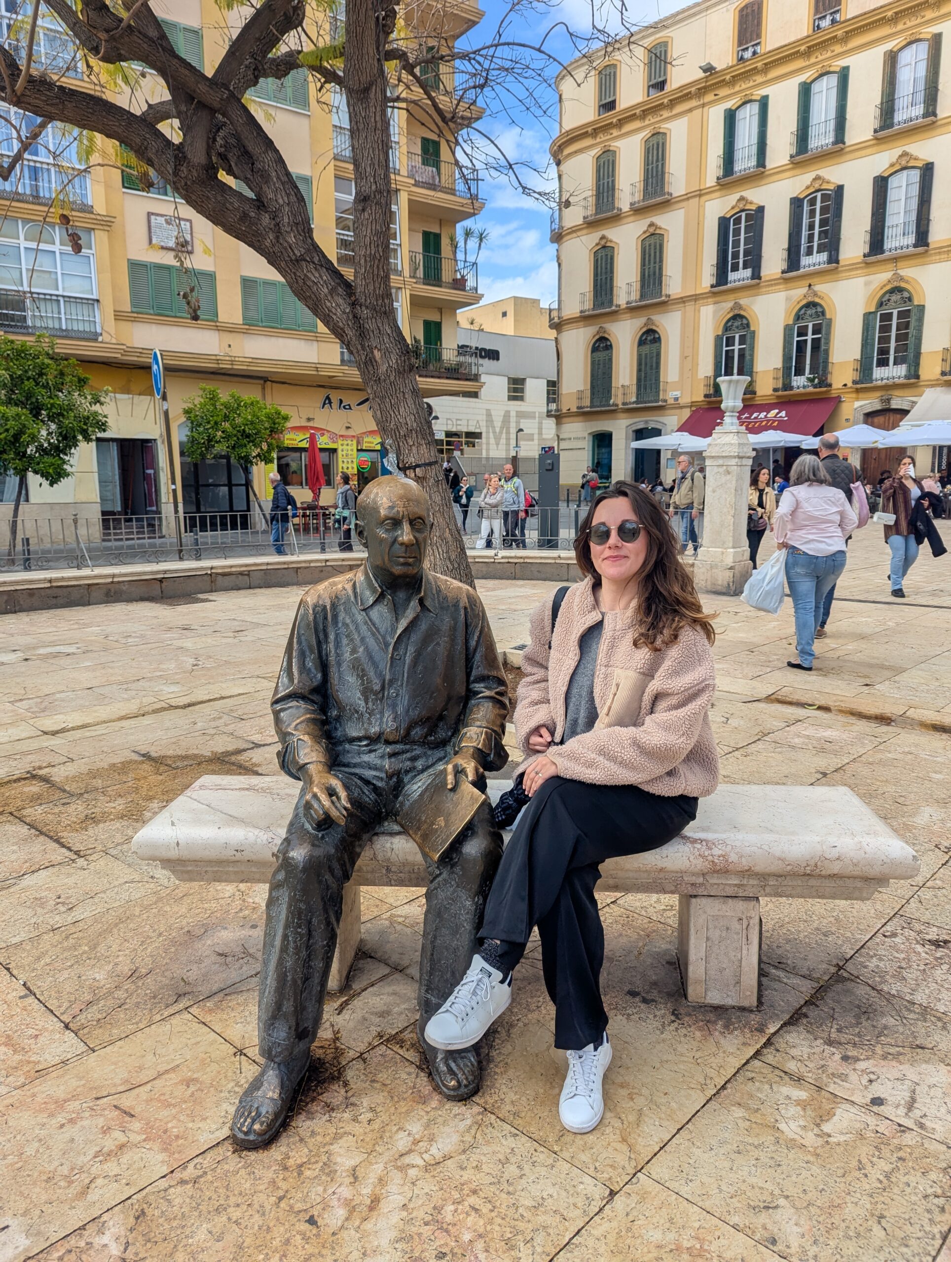 Direction ensuite le quartier de Lagunillas, juste à côté du centre historique. Ici les murs sont recouverts de fresques engagées, de portraits et de messages artistiques. Si vous aimez le street art à Malaga, c’est un quartier à ne pas manquer, différent de Soho. N’oubliez pas votre cliché à côté de Picasso sur la Place de la Merced.
