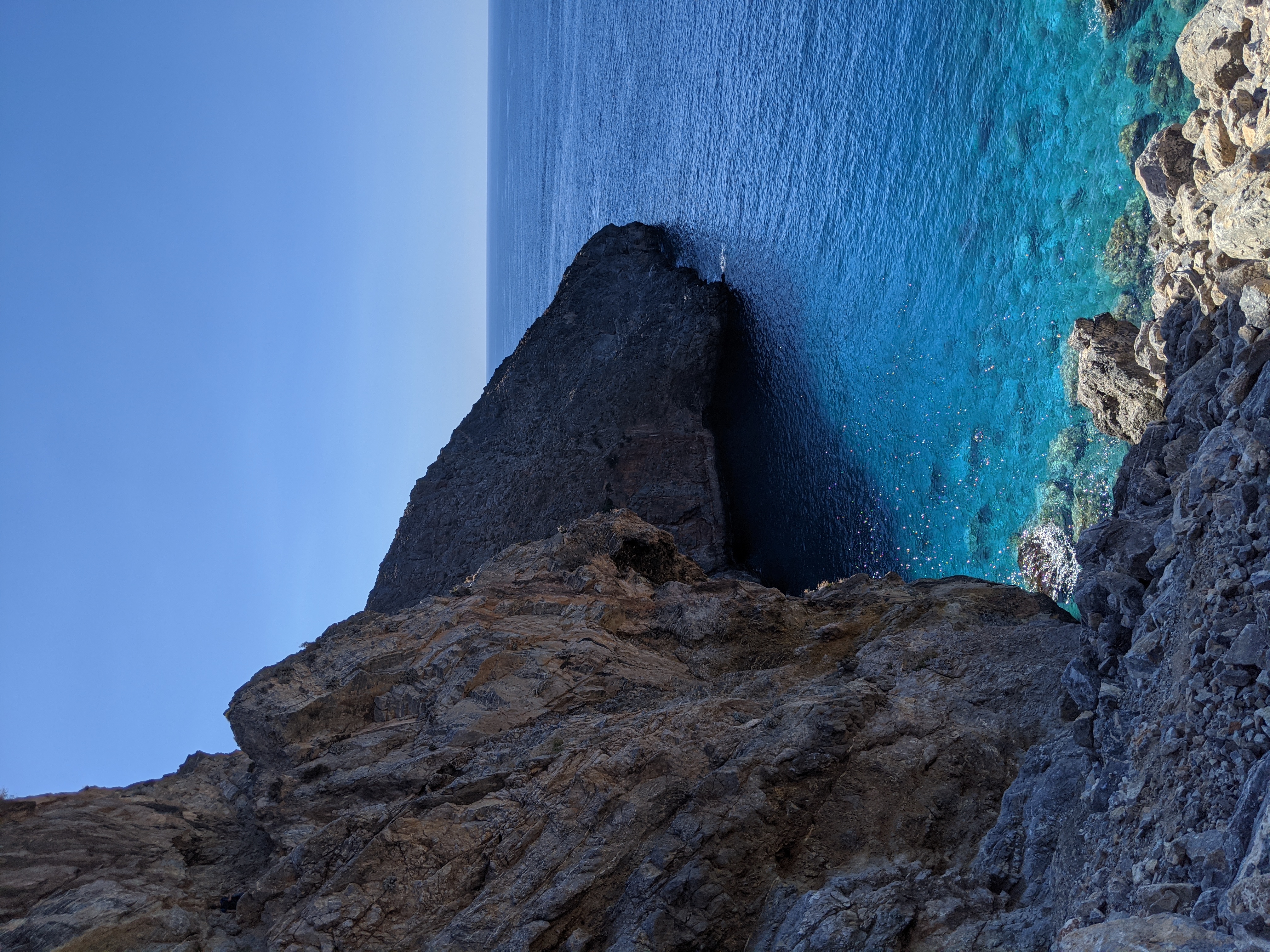 Pour arriver à Loutro, on a choisi de faire une randonnée depuis Chora Sfakion. Le chemin longe la côte, les falaises, avec des vues magnifiques sur la mer couleur turquoise. Il faut compter environ 3 heures de marche, voir plus si comme nous vous prenez le temps de vous baigner. Mais on en prend plein les yeux tout le long. Et il y a plein de petites plages désertes si on veut faire une pause baignade. C’est l’une des plus belles randonnées côtières que j’ai faites en Grèce.