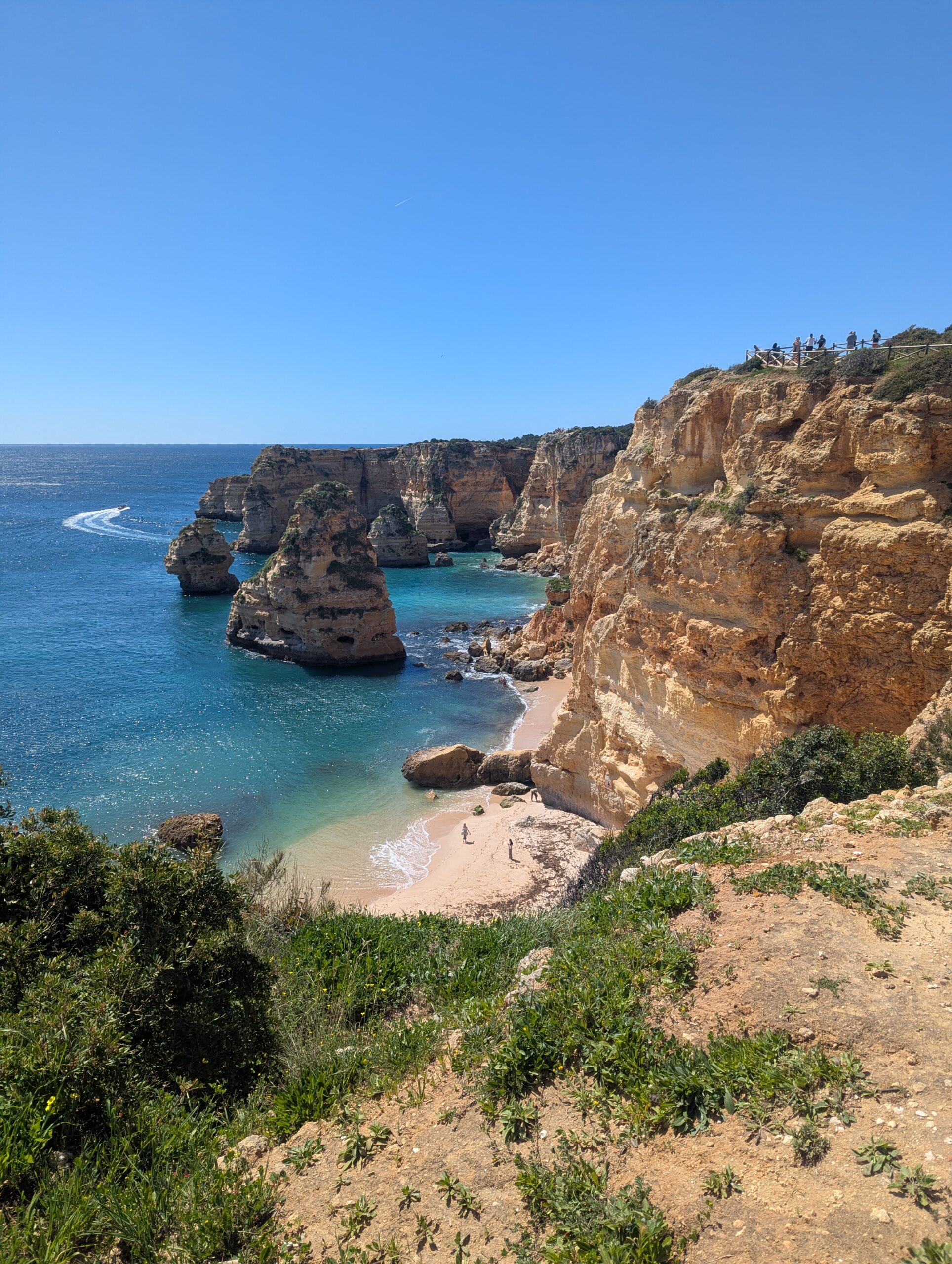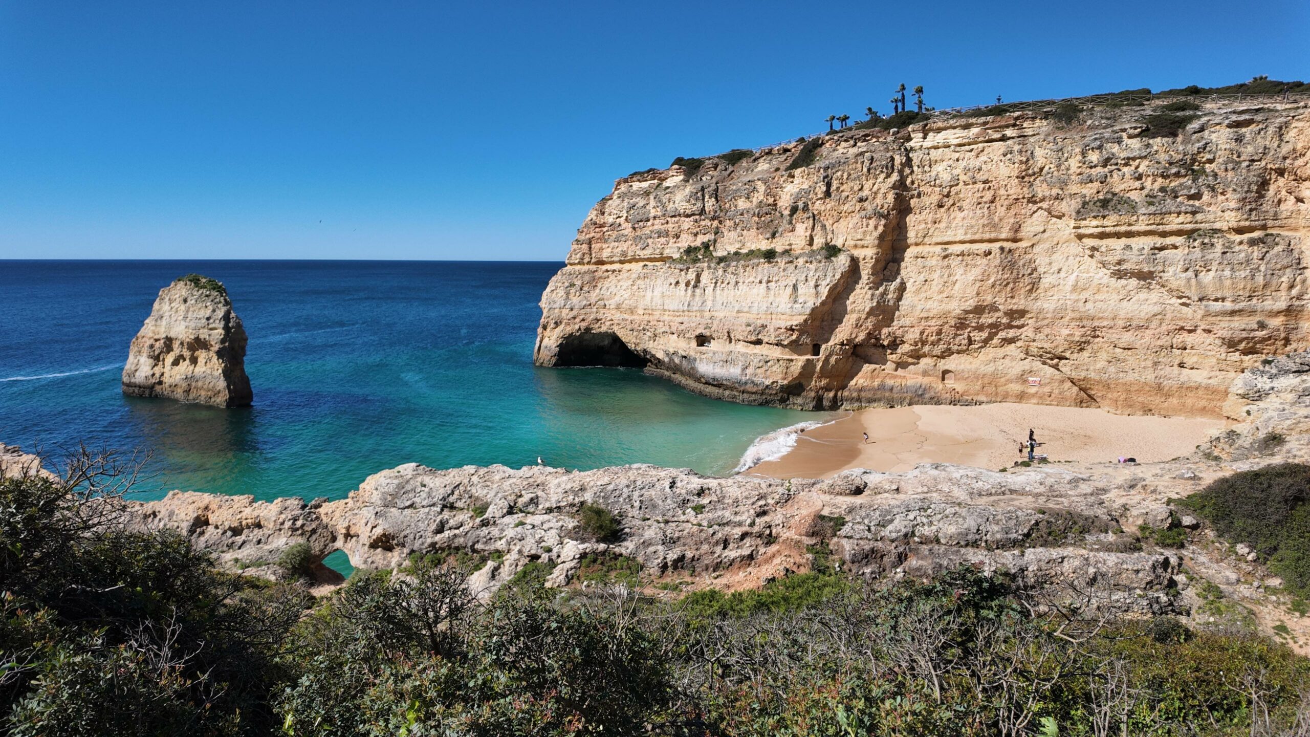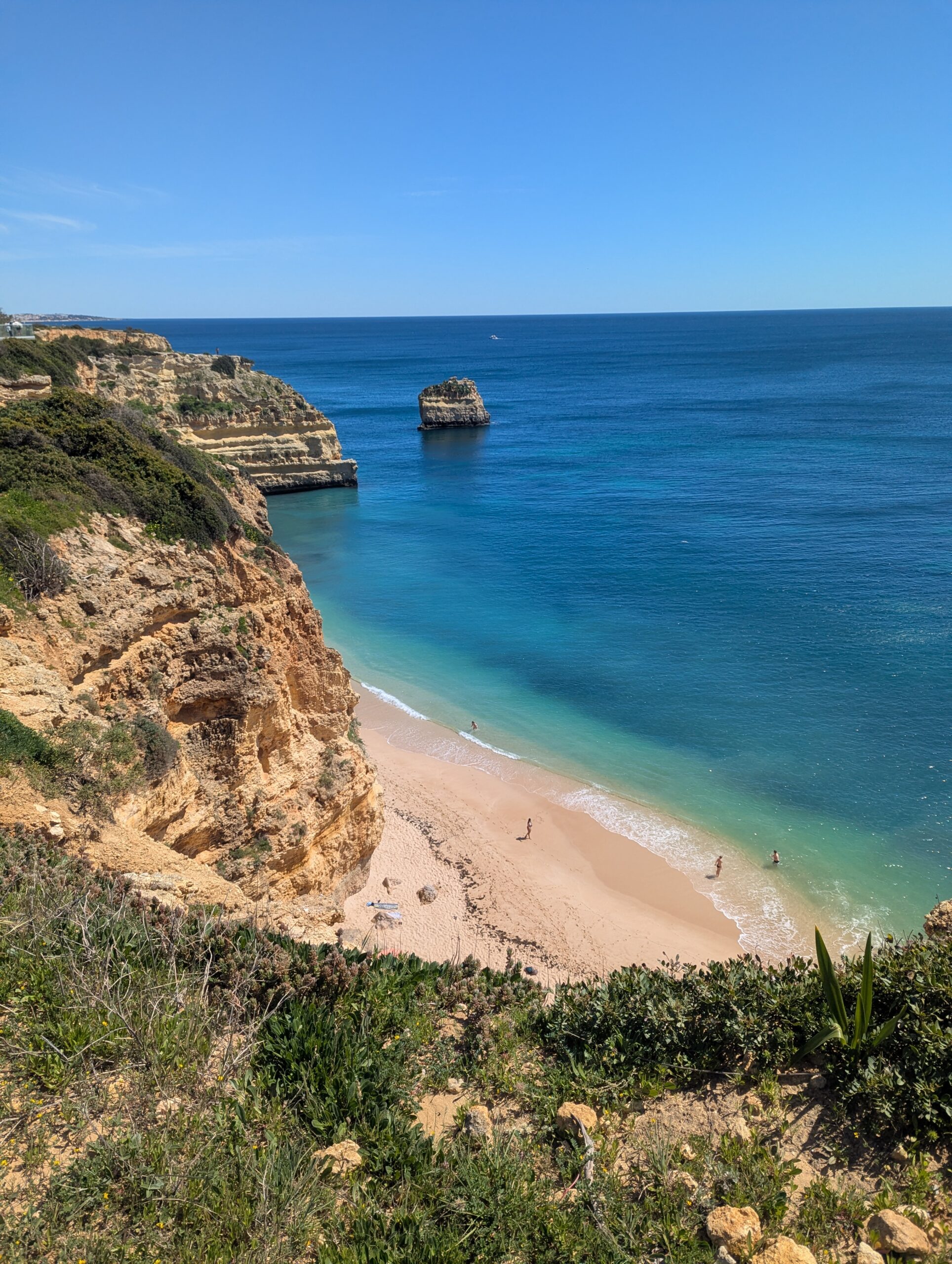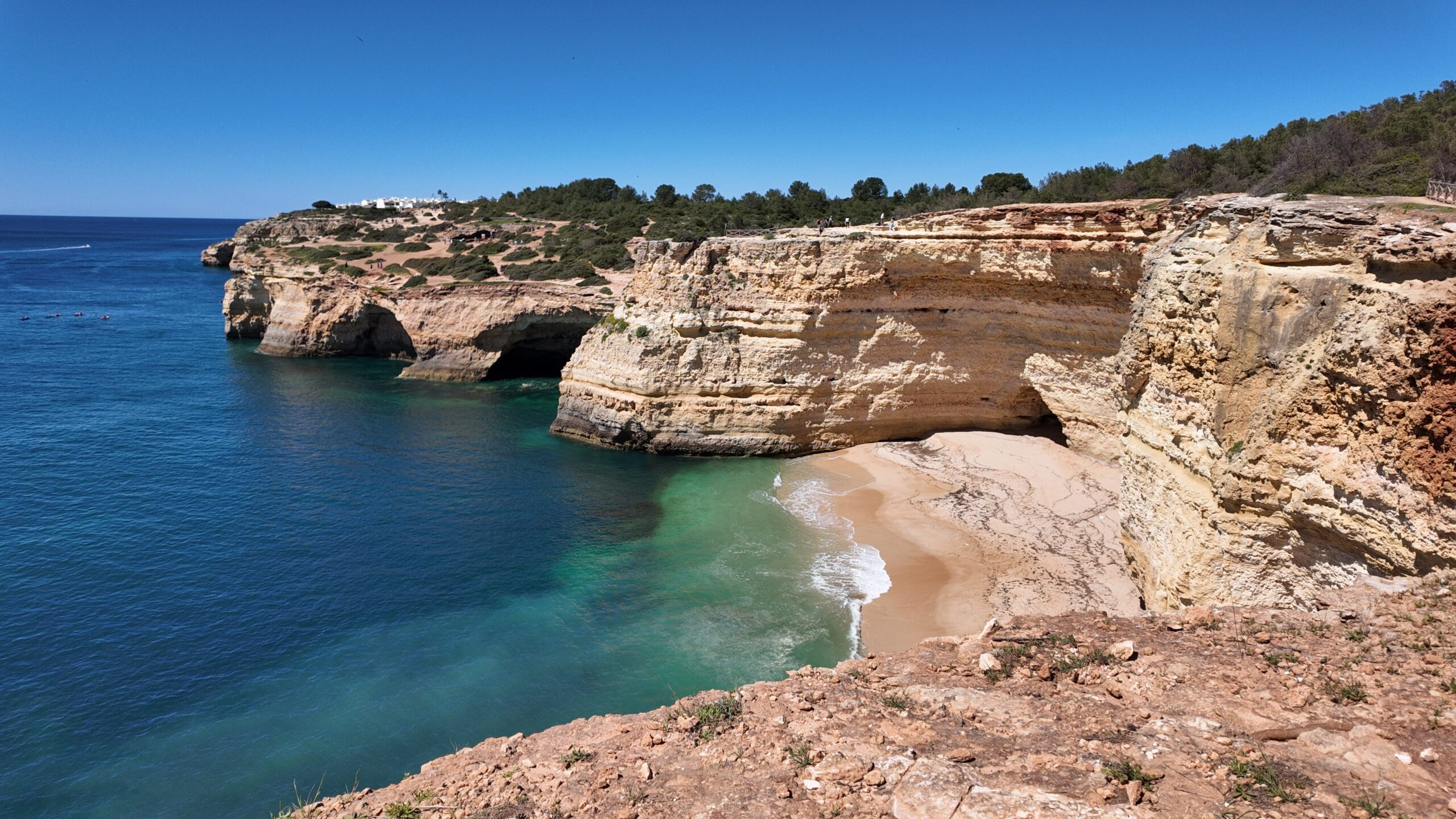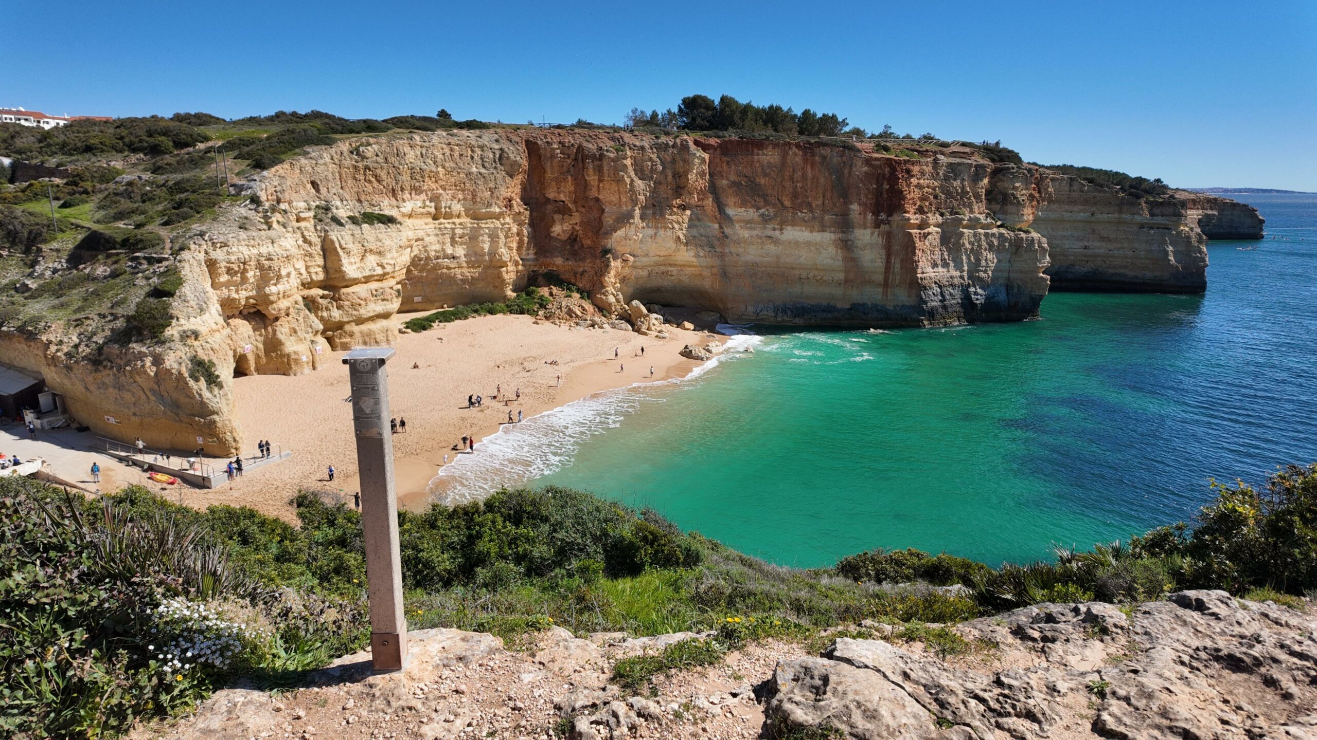 - eau : très important, peu d’ombre et pas de petites boutiques sur le chemin pour en acheter sauf au bout, un petit kiosque à Praia Da Marinha