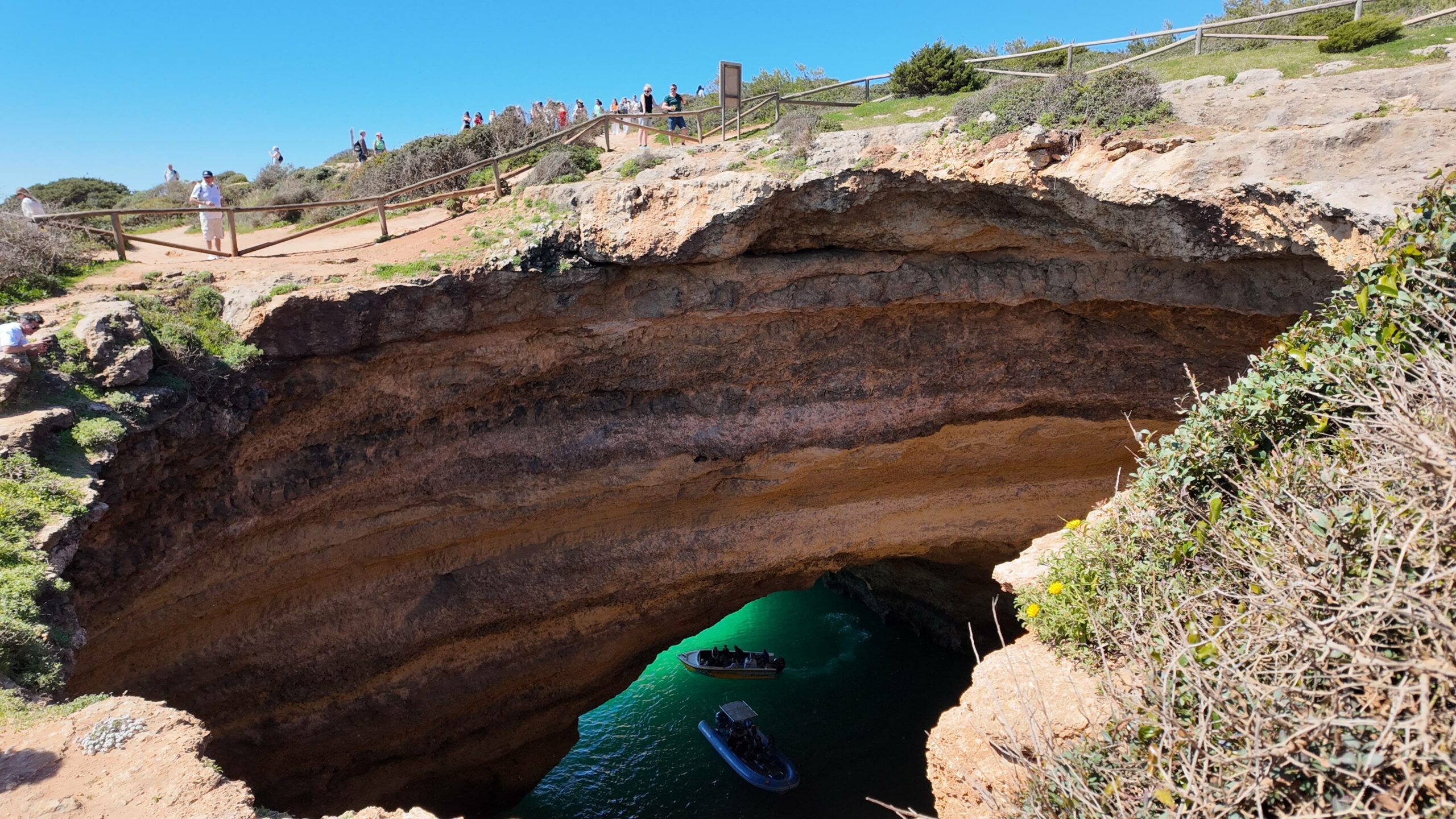 On aperçoit quand même les kayaks et les bateaux en contrebas. Aujourd’hui, il est d’ailleurs interdit d’accoster directement sur la plage à l’intérieur de la grotte, ce qui change un peu l’expérience par rapport à avant.