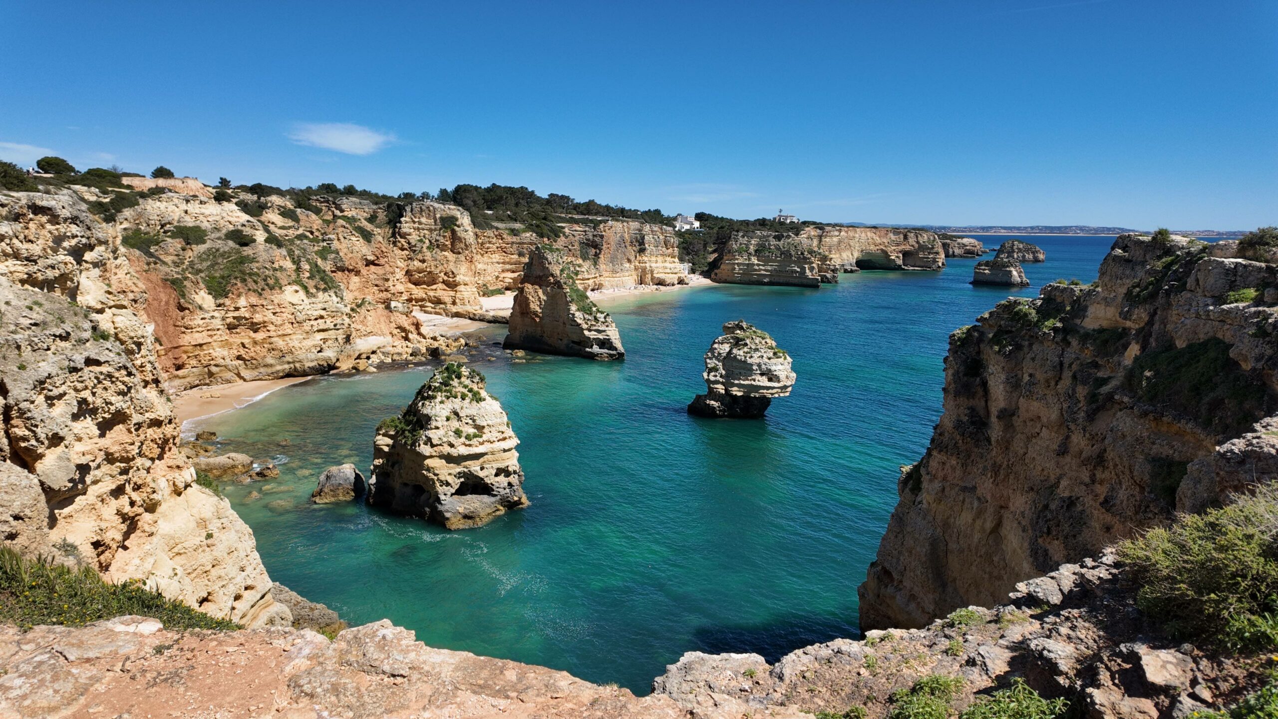 Ce que j’ai particulièrement aimé, ce sont évidemment les paysages tout au long du chemin : début à la fin de la rando on en prend plein les yeux. On alterne entre des passages en hauteur avec une vue vertigineuse sur les falaises et l’océan, et des accès à de belles plages. Et bien sûr, le sentier passe au-dessus de lieux emblématiques comme la Grotte de Benagil ou la célèbre Praia da Marinha.