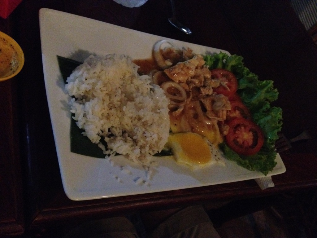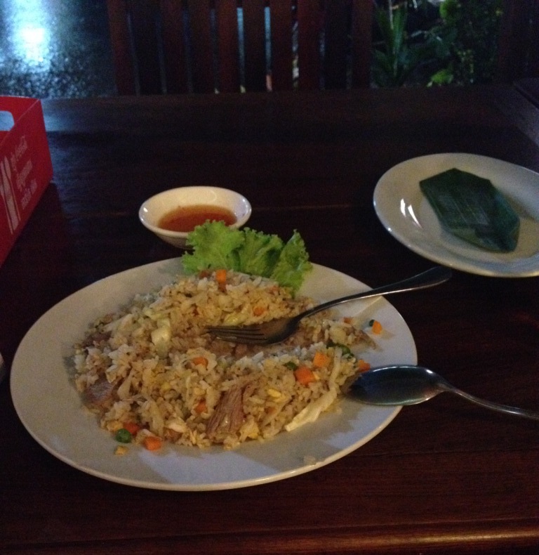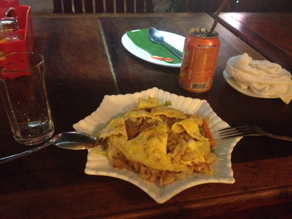 Un restaurant où on reviendra chaque soir de notre séjour. C’est une petite famille cambodgienne qui tient ce restaurant, leur fils ou neveu (on a pas tout compris) parle très bien anglais, il nous servait de traducteur car eux ne maitrisaient pas l’anglais. Ils sont vraiment très gentils. On a vécu beaucoup de rapport marchant au Cambodge, en général on te posait 2-3 questions mais c’était toujours dans le but de te vendre quelque chose, c’est un pays pauvre d’un côté c’est normal. En tout cas, pas dans ce restaurant. De plus les prix ne sont vraiment pas élevés; 1,5$ pour un plat de nouilles ou riz avec du chicken. Et comme on revenait chaque soir, un soir sur 2 on avait le droit à un dessert gratuit, ils nous faisaient goûter les spécialités du pays. C’était super, grâce à eux on a pu goûter les bananas spring rolls (des genres de nems avec une banane dedans), un dessert à la citrouille/potiron avec une crème sucrée à l’intérieur du potiron et un autre dessert avec du lait de coco, du sucre et des bananes chaudes dedans (hmmm, celui-ci était très bon!). Ça nous a permis de goûter de nouvelles choses, car sinon on n’aurait jamais eu l’idée de commander ces desserts (surtout la citrouille).