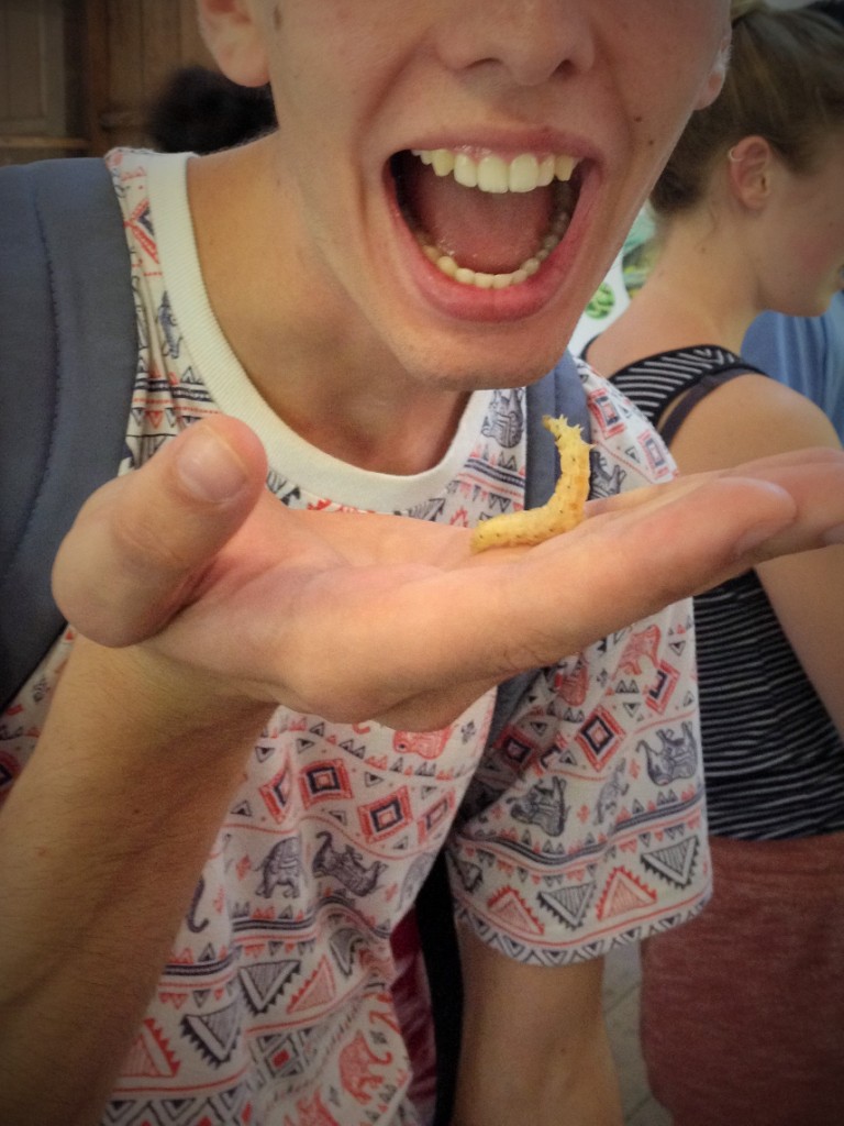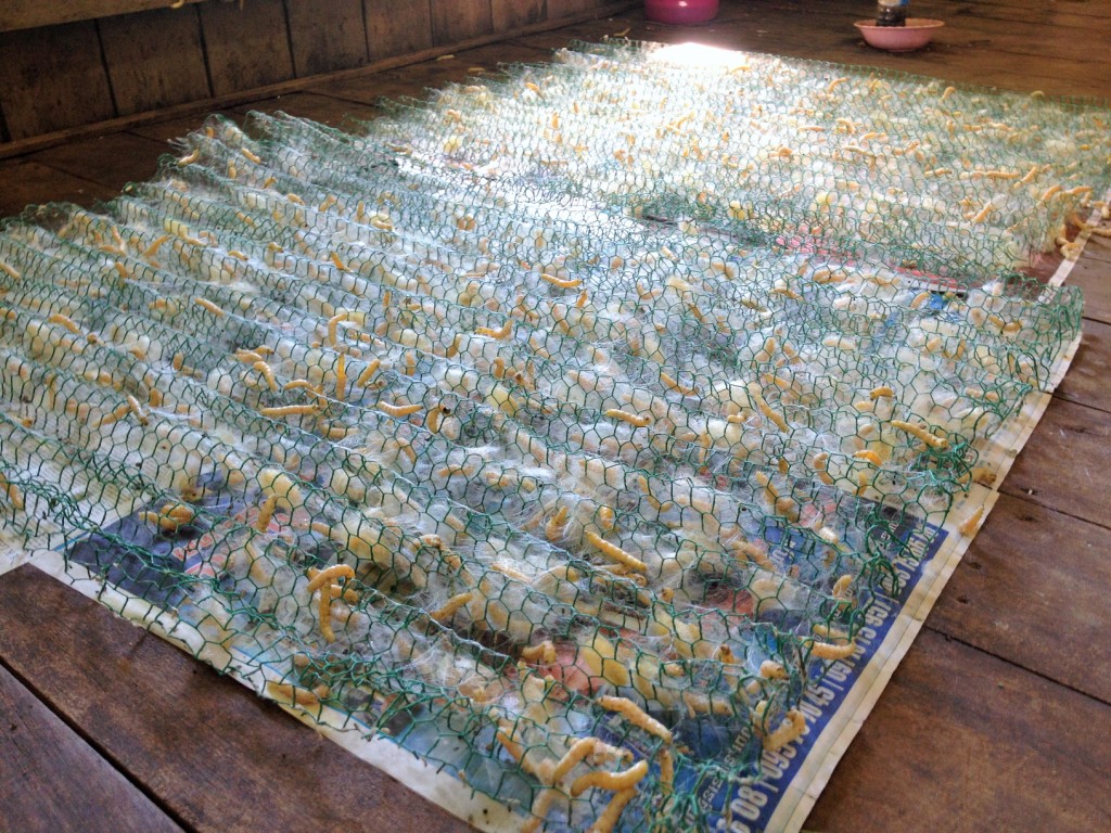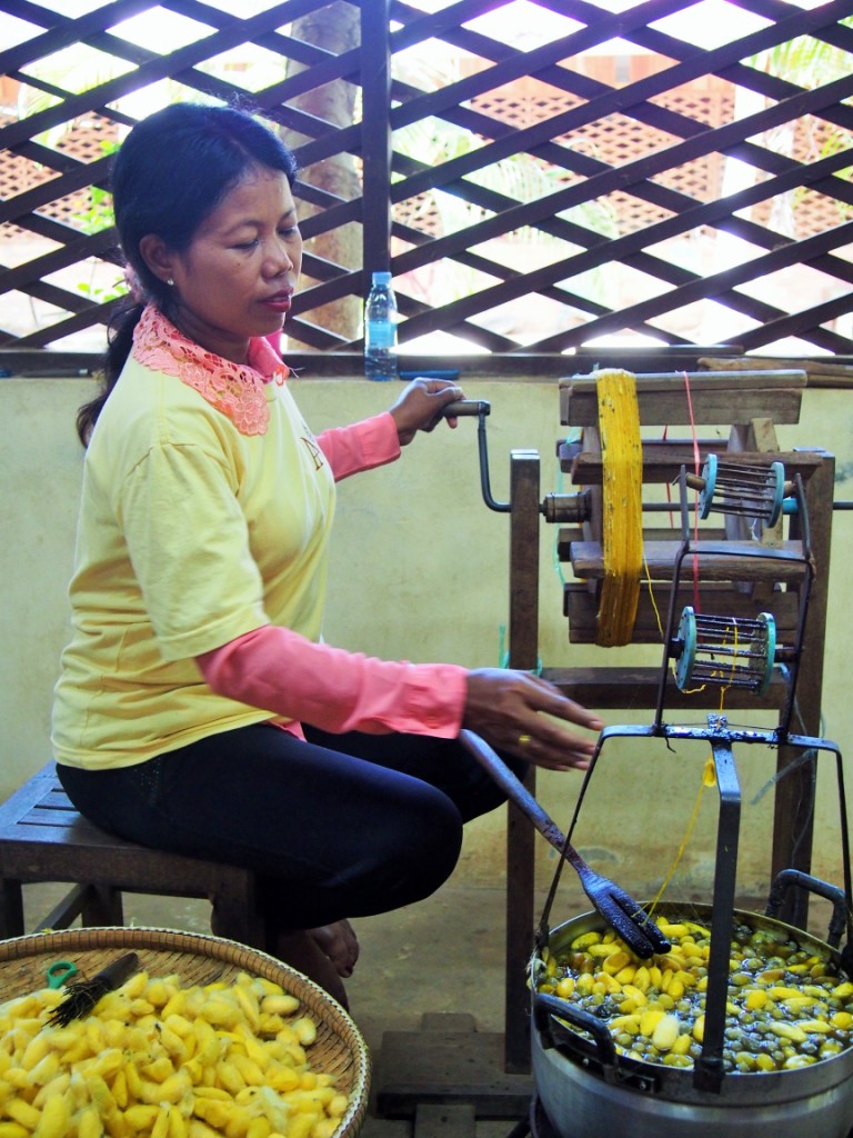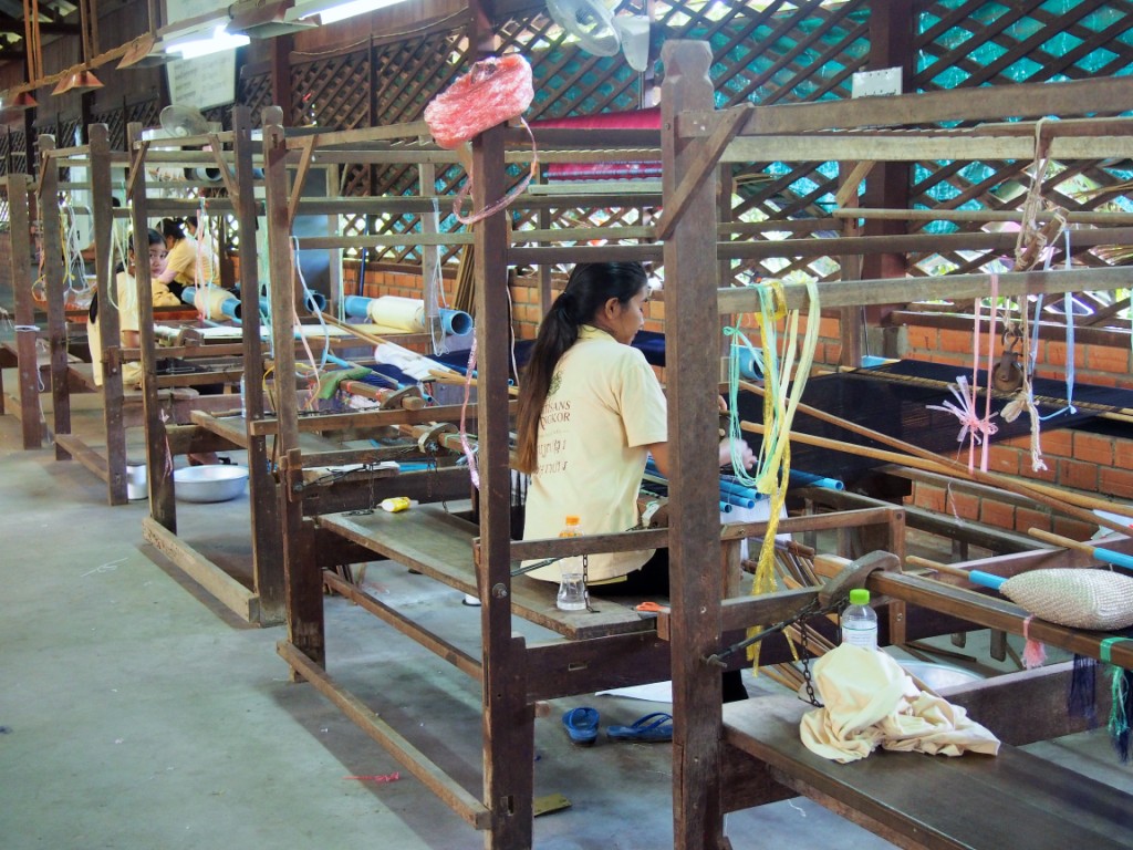 Le 20/07/16, à 13h30 on prend la navette gratuite depuis les chantiers écoles pour aller visiter la magnanerie où on peut voir toutes les étapes de la fabrication de la soie. Oui oui même les petits vers étaient là. Nous avons un guide pour tout le groupe qui nous explique tout, les différents types de soie, les étapes etc. La navette rentre à 16h30 au centre de Siem Reap. La même visite est organisée le matin, gratuitement également.