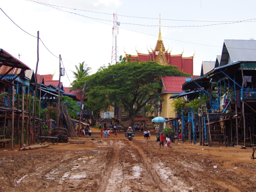 Après avoir dépassé la forêt et quelques maisons on descend du bateau pour visiter un temple et un bout du village qui n’est pas encore sous l’eau du lac. Les maisons sont sur pilotis à six/sept mètres de haut, comme il n’y a pas d’eau c’est encore plus impressionnant de voir cette hauteur, ces logements qui tiennent sur des bouts de bois. Il y a aussi une belle école pour les enfants dans le village. On a vu beaucoup d’enfants, j’en ai profité pour faire quelques photos.