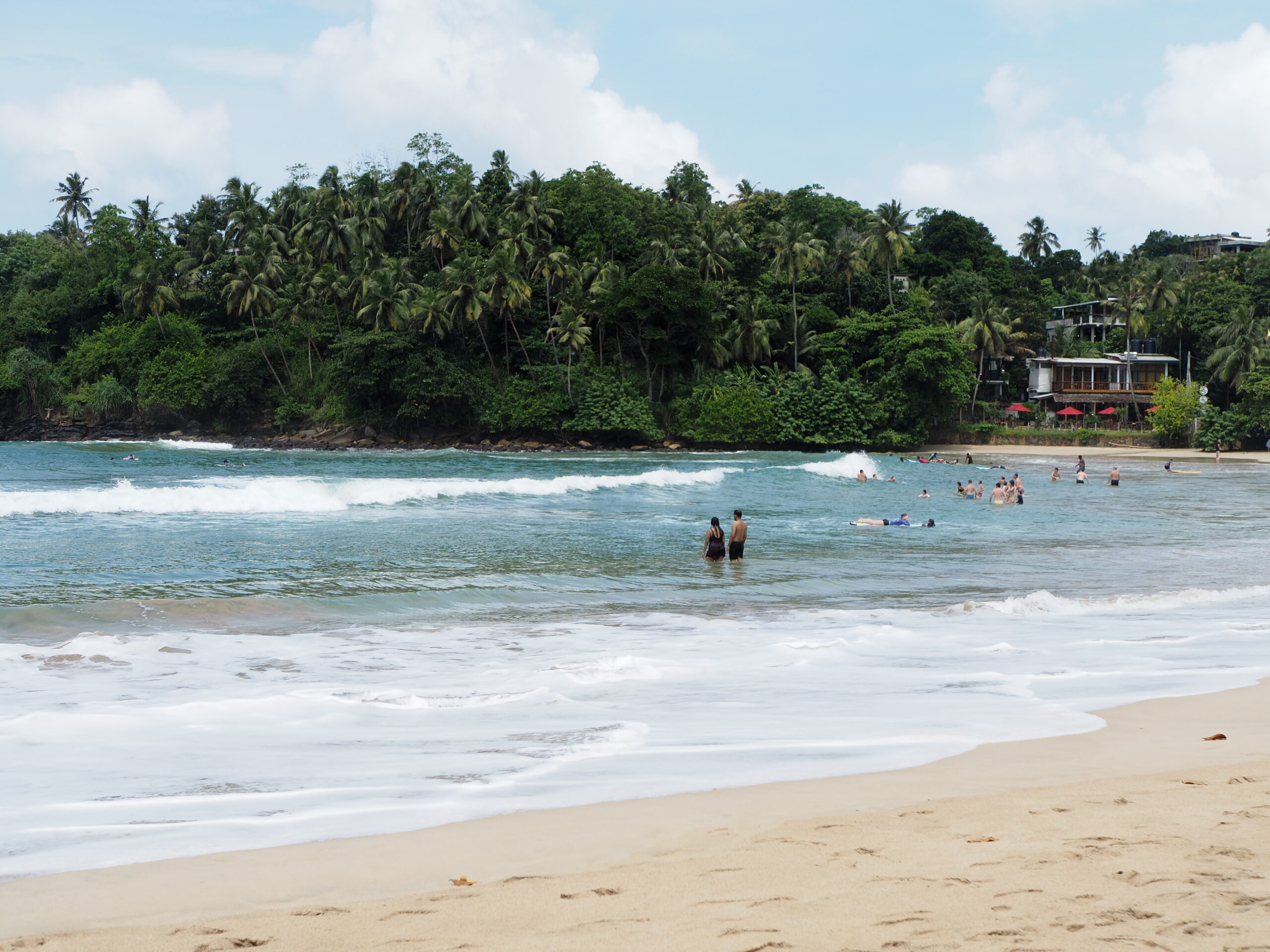 À quelques kilomètres de Tangalle, vous pouvez rejoindre Hiriketiya, une baie qui change complètement d’ambiance. Ici, la mer est généralement plus calme, ce qui permet de se baigner plus facilement (en restant vigilant, car le courant peut surprendre). C’est surtout l’un des meilleurs spots pour apprendre le surf au Sri Lanka : une petite baie en arc de cercle, bordée de palmiers, avec des vagues régulières.