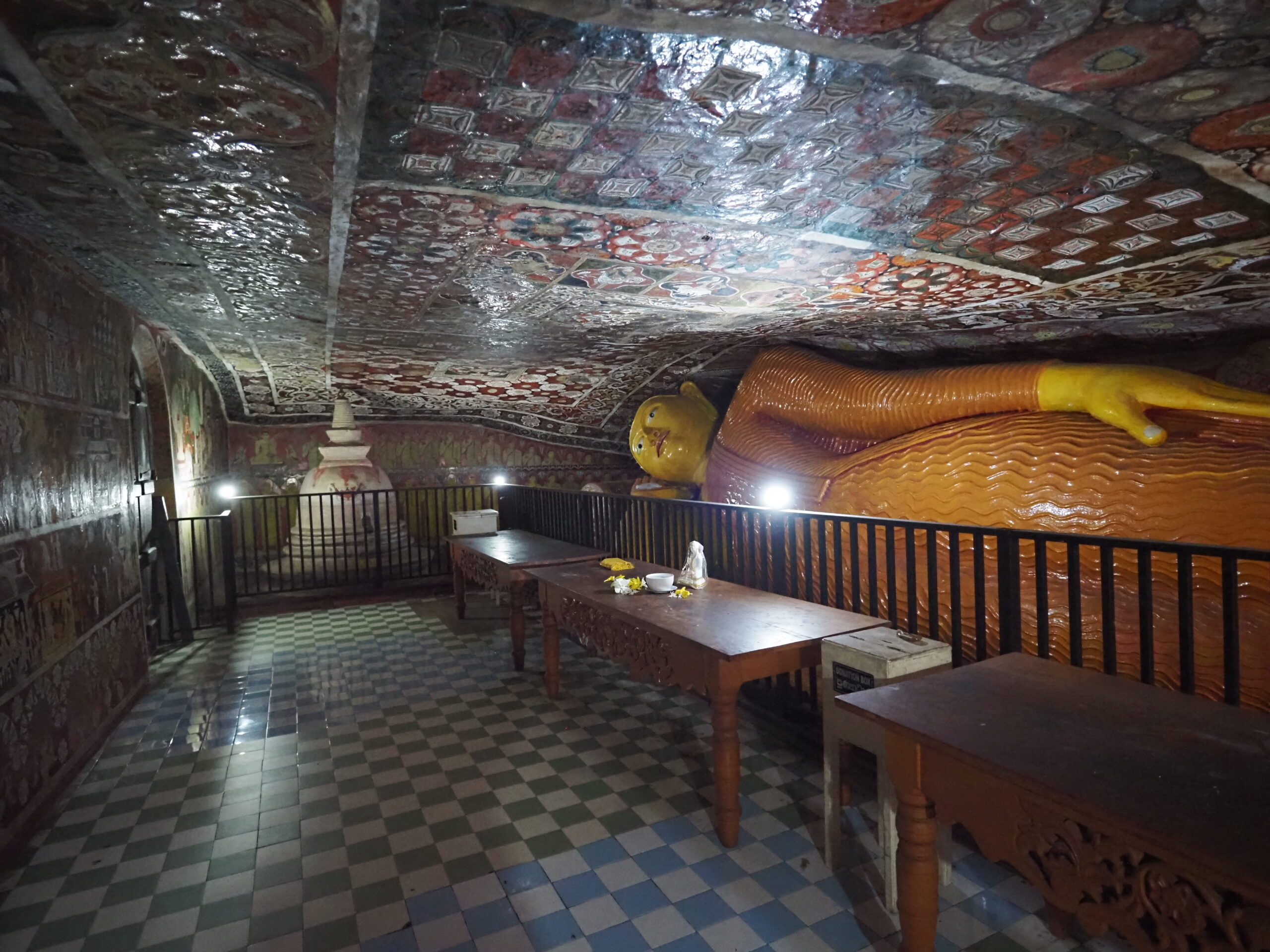 Situé à environ 20 km au nord de Tangalle, je vous conseille de visiter le temple Mulkirigala. Le site est perché sur un immense rocher, à plus de 200 mètres d’altitude. Il faut grimper environ 500 marches, mais en haut vous aurez une belle vue sur la jungle et les rizières. Le temple se compose de plusieurs niveaux, chacun abritant des grottes peintes, des statues de Bouddha allongées, des fresques colorées et de petits autels où les fidèles déposent fleurs et offrandes.